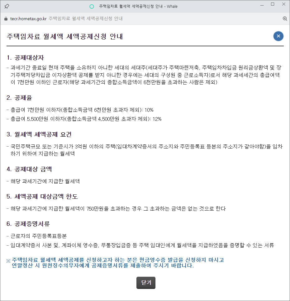 | - 본인 또는 기본공제대상자가 월세 계약해야 함 |