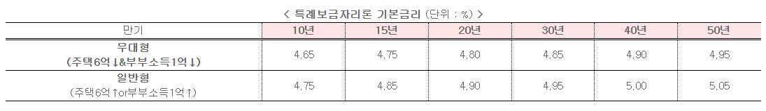 [ 특례보금자리론 기본금리 (단위 : %) ]